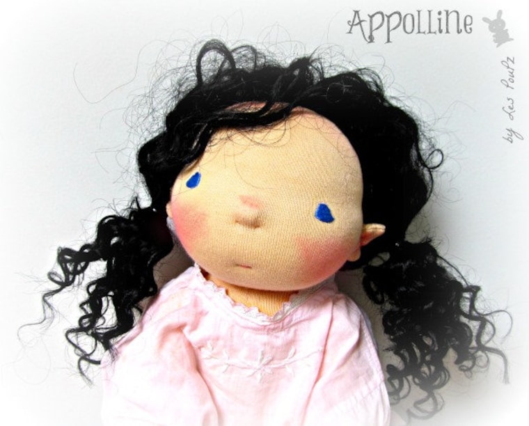 I started dollmaking in 2011 and I loved creating little dollies such as Appolline. A sweet simple and expressive face. -