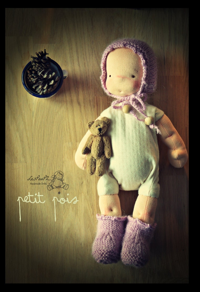 I also designed small babies like this one. I called them Petit Pois. They're 11 inches and often come bald. -