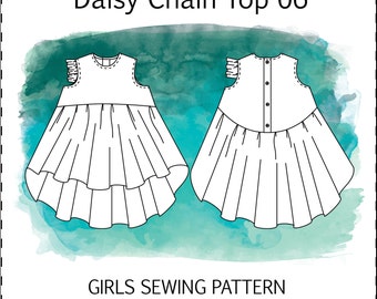 Daisy Chain Top 06 // PDF sewing pattern // girl size 3 - 10 years top gathers baby doll ruffle sleeve button back hi low swing trapeze
