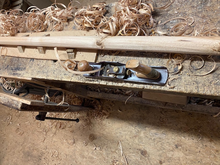 Mi taller se encuentra en una pradera rodeada de robles y castaños centenarios en Bretaña. Esto me permite trabajar con madera local, sostenible y renovable, a menudo procedente de árboles caídos o talados en las cercanías. Es una madera preciosa que no ha viajado por todo el mundo ni proviene de bosques devastados.