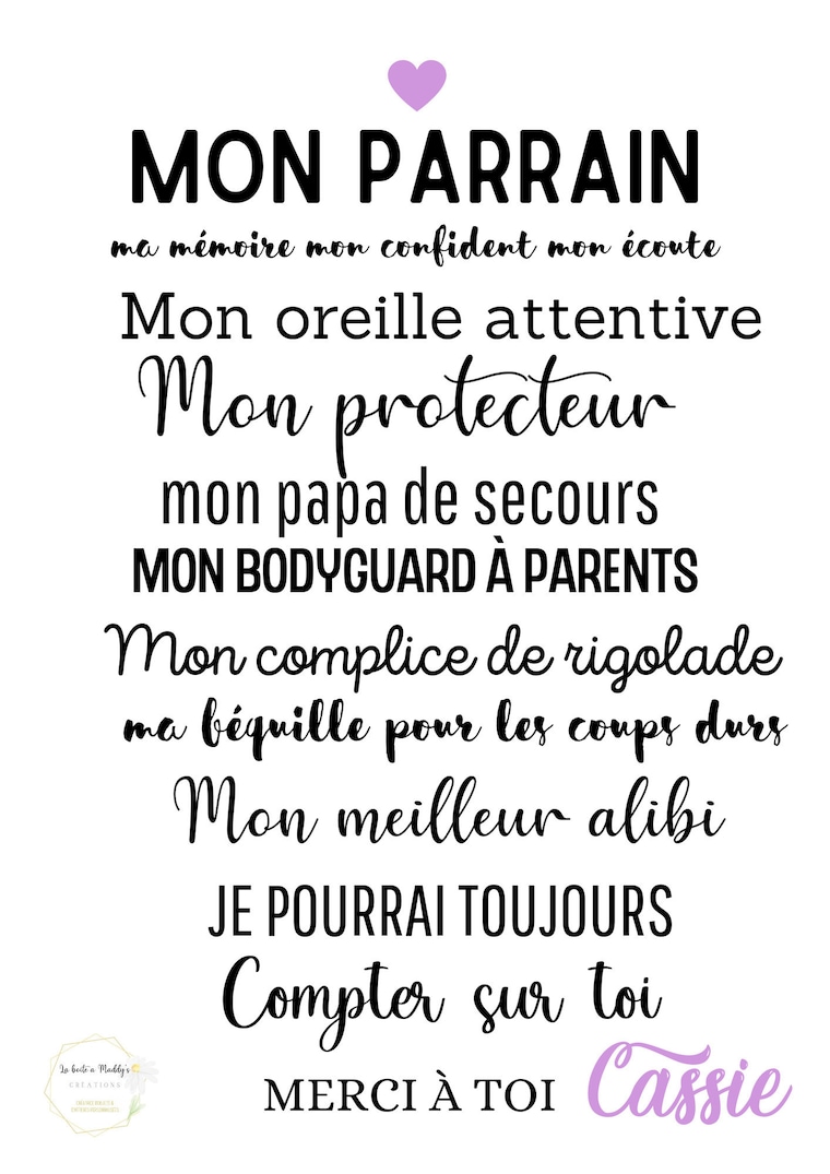 Affiche personnalisée Parrain avec phrase personnalisable et couleurs, au choix.