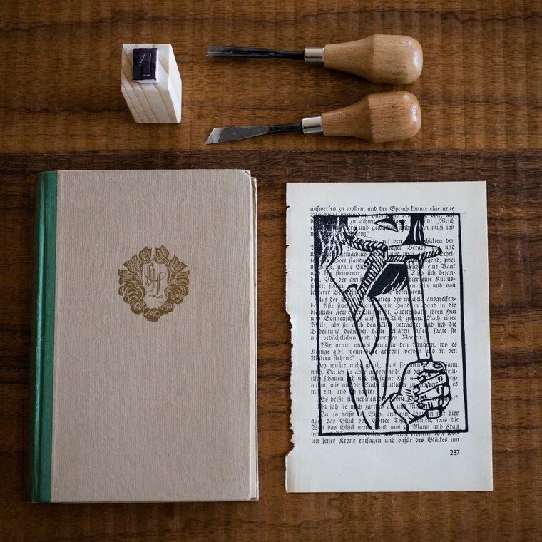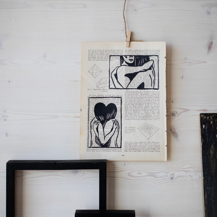 Vintage books that are too damaged to really read give a perfect surface to print on. -