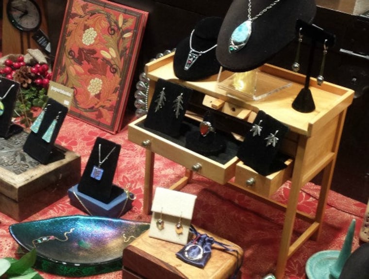 A few pieces in the window of my gallery, Wandering Moon, in Shelburne Falls, MA.