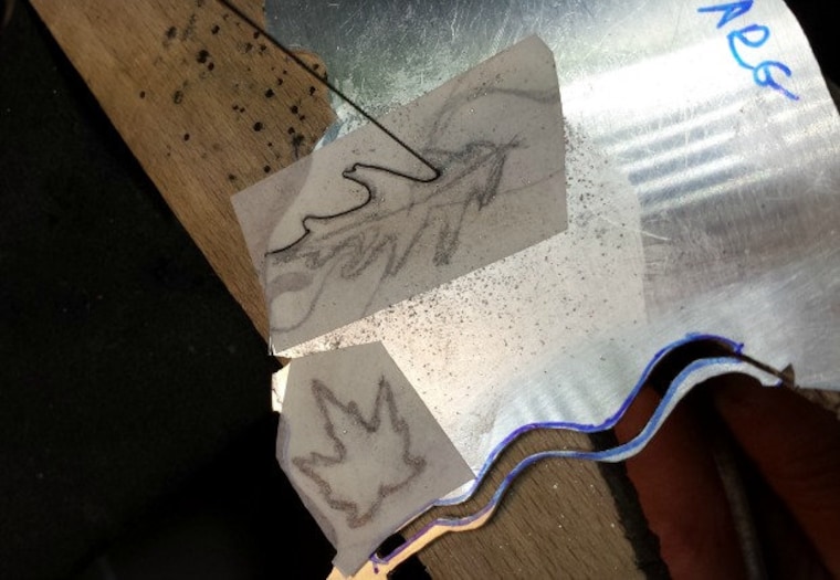 Sawing out hand drawn oak leaves for earrings. -