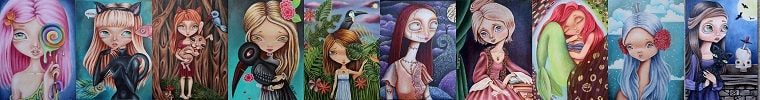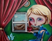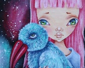5 out of 5 starsSmall size Big heart very sweet painting by enchanting Ela Tell! This green eyed beauty loves her fluffy blue toucan friend and holds him close. Thank you Ela!XOXOXO