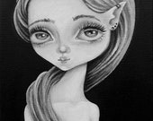 5 out of 5 starsShe's stunning in black and white! I love this elfin sprite with her tattoos and languid eyes. I love everything Ela creates and she is so nice! Ela tucked in special gifts, including handmade art cards, a pastel painting, an easel for one of her works of art, a photo of her painting "Alice's Abyss" and cute kitty stickers and sweets! When I discovered Ela's work, I became so smitten, and I was so happy to be able to have her amazing art in our home and also to give as gifts. Thank you so much Ela! We are forever fans!XOXOXO