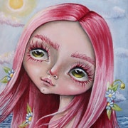 5 out of 5 starsEla's imaginative mind creates the most beautiful artwork! Her femme floats among a field of daisies. Although the clouds look heavy and dark, she doesn't hesitate to pull back her umbrella to feel the rain. She looks up at the clouds again and sees that they are rimmed in pink, and the raindrops falling are pink too! Today she sees her silver lining! Thank you Ela! XOXOXO