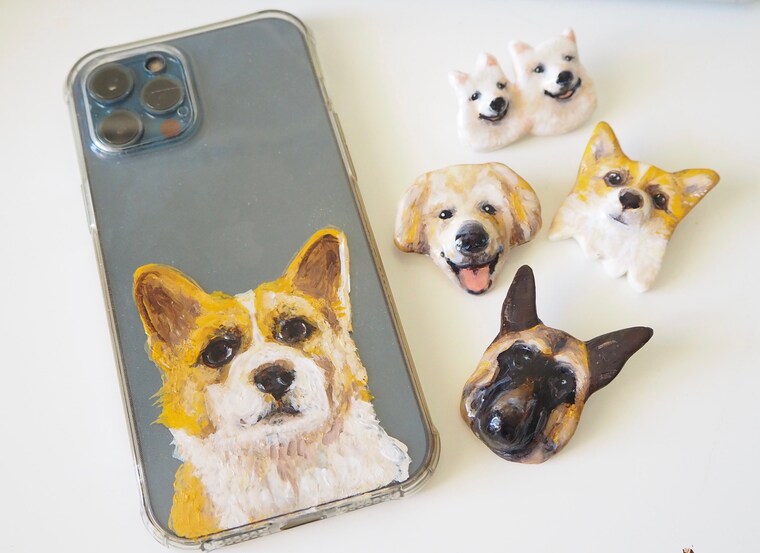 Customized clay pet portrait magnets. -