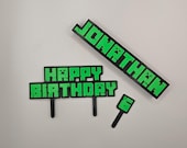 5 out of 5 starsThis was the perfect cake topper for my son's birthday cake, as he loves Minecraft! I put in on a Nothing Bundt cake and it looked adorable. The price was right, hehe, and the quality was excellent. The shipping arrived on time and was packaged well. My son also loved that he could use the name piece to keep on his bookshelf as decor. I would recommend this seller! Very happy with the items! ♡