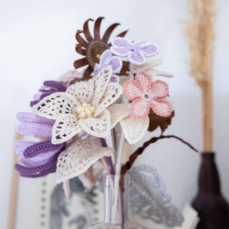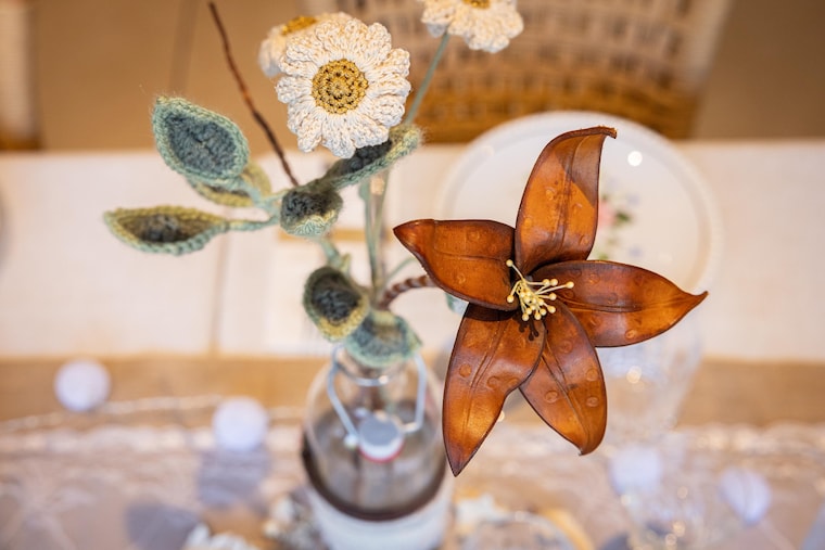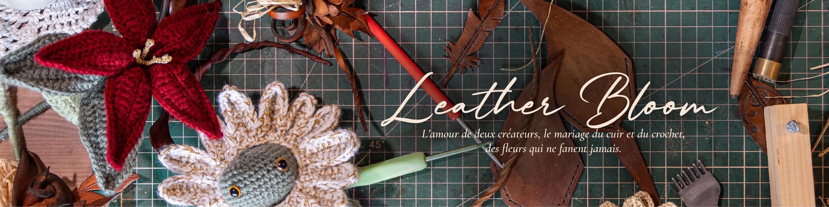 It all started with our wedding: two creative enthusiasts, one working with leather, wood, and metal, the other with crochet, painting, and sculpture, decided to create all the decorations themselves. From this adventure was born our desire to create together every day. Today, we make unique, handcrafted pieces, blending materials and techniques, where every gesture and every detail tells a story. Handmade creations, singular and warm, designed to be experienced, given as gifts, and shared.