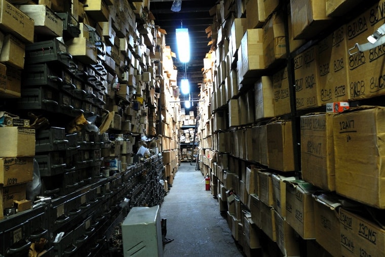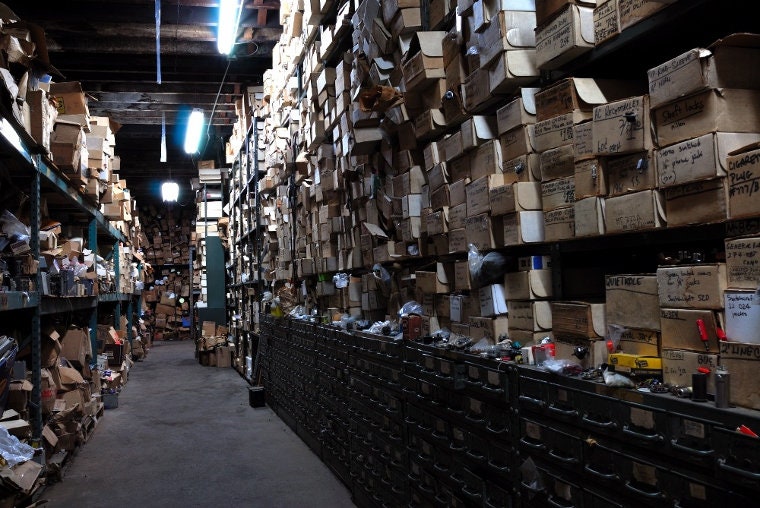 My shop is huge for just one person. Here's the left-hand aisle, Transformers, connectors, sockets, capacitors -