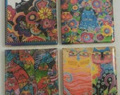 Welcome to Lenas custom coasters. I'm also known as Lenas Custom Crafts on some other sites. In the beginning I wanted to make a set of coasters just for my house. I had no luck shopping for coasters in stores or online. Ive always been artsy and crafty and I love creating beautiful things with my hands. So I started making coasters and ended up making them for everyone else except for myself. Finally about 6 months later my coffee table had it's very own set of coasters and so did alot of other happy customers. I work at a little breakfast place in a small town and I display my coasters in the entrance way of the restaurant And also at a few other places around my town. I'm kinda known as "The coaster lady" Now. After I get off work I usually go home and after doing all my motherly and wifely duties I zone in and start working on my coasters. My husband and kids are very supportive of me and also very helpful as well. My husband helps out around the house more to pick up my Slack so that I can be free to help bring in a little extra income. He also helps with the coaster making process in whatever way he can. My daughter who is 10 has started helping by making magnets using the scraps of my materials. I also make magnets, trivets, coffee mugs, picture frames, plaques, wine glass charms, hand painted wine glasses and jewelry. I love doing this because it's a good way to earn some much needed extra income plus it brings our family together in a productive and creative way. I'm hoping to become more popular on ETSY And start selling alot more but for Now I'm Happy that I can be doing something that I love and enjoying my family at the same time.