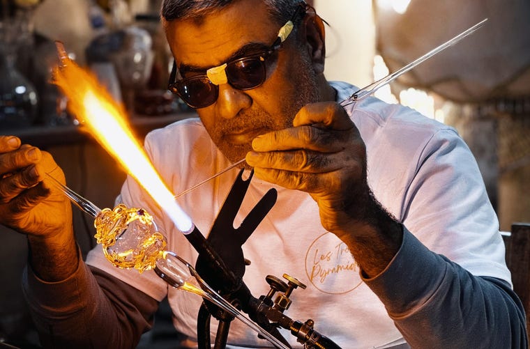 I fell in love with the process instantly. The heat of the furnace, the skill required to shape the glass, the way each piece turned out slightly different despite using the same techniques - it was all so exciting to me.