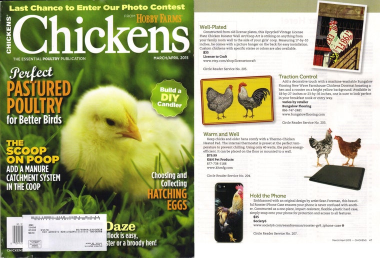 *Our license plate chickens and roosters were featured in the March/April 2015 issue of Chickens Magazine*