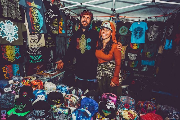 I prefer to let the art communicate my message, as I am not usually a man of many words. However, it seems appropriate to describe my philosophy and background here. Light Sound Dimension embodies the paradigm of transformation through art. I have always enjoyed music festivals since my first festival in 1999, and attending festivals has been a priority in my life since 2005. As an autodidact, I began teaching myself the basics of design and screenprinting in 2008, using stencil graffiti as my main source of inspiration. In 2009, I started Light Sound Dimension based on my desire to create more art and share it in a festival atmosphere. Since then, my wife Jen and I have grown Light Sound Dimension into a successful business & full-time job.