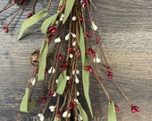 星 5 個のうち 5 個This is the one of the 3 I love most! The pips of rich red, the creamy cream, the soft touch green leaves with the rusted bells (they have a little bead inside & make a very subtle rattle sound) make this garland a favorite for Christmas time! Beautiful!! TY😊
