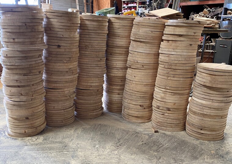 Small round boards waiting to be finished. -