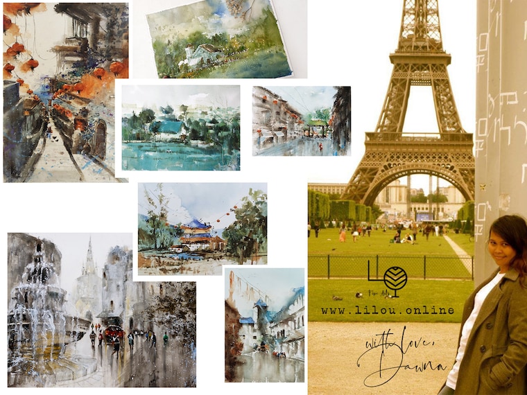 I'm Dawna, a French-Filipino watercolorist BASED in Spain who started to paint at a young age. I travelled the world with my baby and husband for the last four years. So all my paintings are travelled inspired.