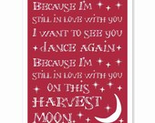 5 out of 5 starsThe print of this song -- "Harvest Moon" by Neil Young -- is simply beautiful. I got it matted and framed right away... and gave it to my husband as an early Valentine's day gift. He loves it! Many thanks to the artist!