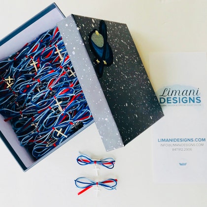 “Getting inspiration can come at any moment and we rely on each other to bounce ideas off of one another. We talk on the phone a few times a day excited with a new project coming our way or finding that perfect ribbon. Limani Designs is definitely a true partnership between the two of us.”