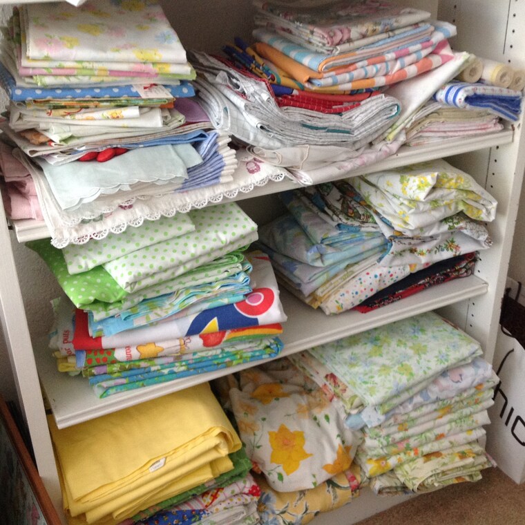 My stash of sheets and pillowcases waiting to be listed in my Etsy shop! -