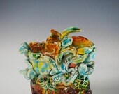 My artworks for the table often refer to traditional porcelain or restaurant whitewares, but with softer forms inspired by the playful and abundant qualities of Mexican earthenware. I invented my own production process after studying clay mold fragments in antiquated factories and museums. After forming pieces in molds, on the wheel, or both, I finish with stamps, slips, sprigs and multihued glazes. Though my colors can evoke a healthy garden in bloom, I aim for a strength of form that feels muscular and strong while showing fluidity. In this way I play both ends of the spectrum, from the dynamic and substantive to the detailed and dreamy--full of surprise. My artwork is best presented with a freshly prepared meal.