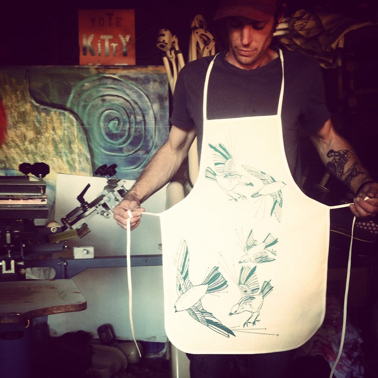 Hand printed, 100% natural, cotton canvas aprons to keep you clean in the messiest of messes. -
