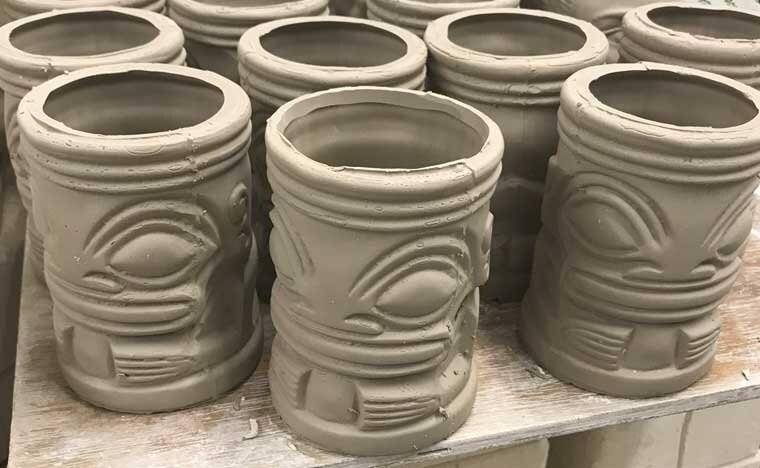 As they began designing Polynesian-inspired décor and interiors, word spread — and so did their client base. Soon they were creating full Tiki environments for bars, nightclubs, and collectors, always guided by their “learn it, build it, do it ourselves” philosophy. When a client asked for a custom Tiki mug, they bought a kiln and taught themselves the craft — a hands-on approach that still defines the brand today.
