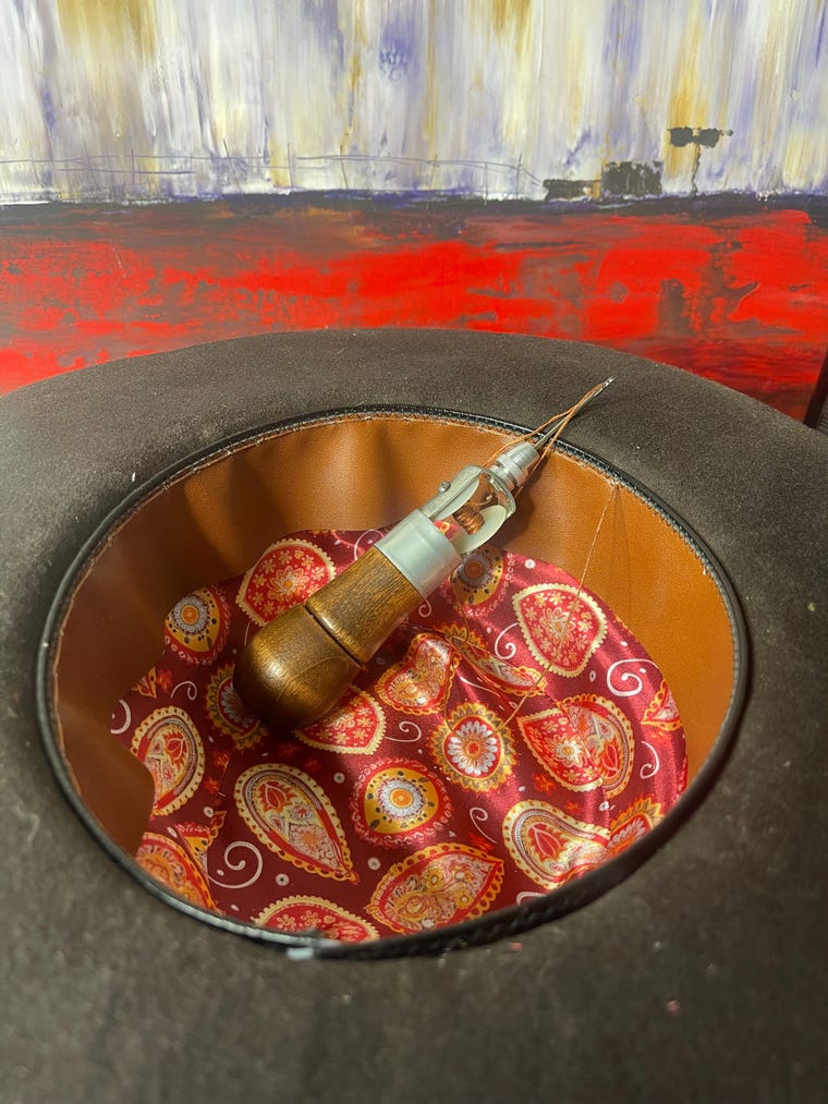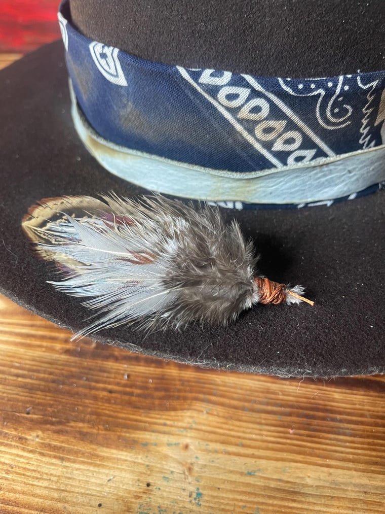 I even hand make the feather bits for the hat bands -