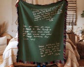 5 out of 5 starsI ordered a custom handwriting woven blanket in navy. Sevde was responsive and very easy to work with. I was surprised by how quickly blanket arrived considering it was custom made. The blanket is great quality and. the handwritten message came out perfectly. The writing is woven in, so it won’t fade or wear off. In case it’s helpful for other shoppers, the fringe is multi-color on the long edges and black and white on the short edges.