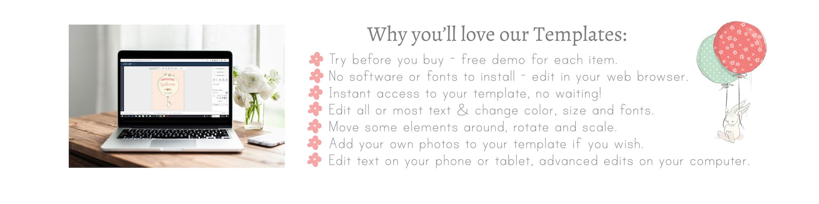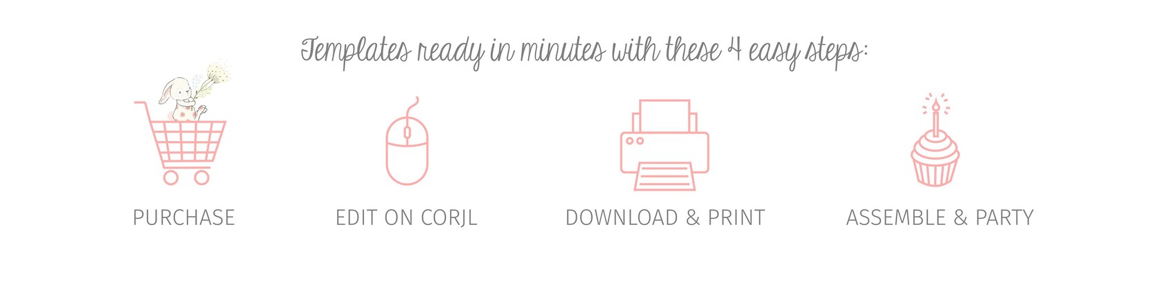 My DIY printables opens up the opportunity for busy moms to create a beautiful party for their little one, while they're saving time and money.