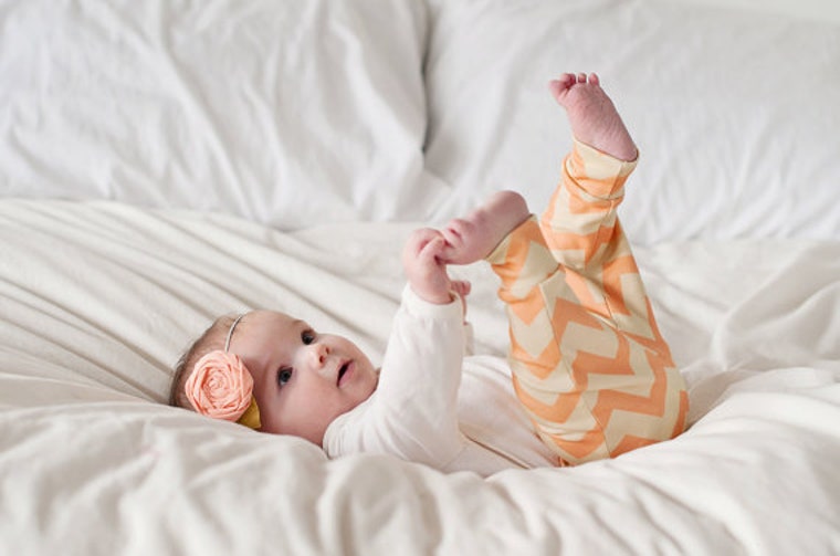 Darling baby girl in her Little Nugget Republic leggings + headband. Peach is my favorite color