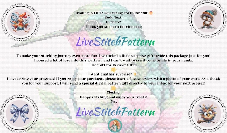 Today, LiveStitchPattern is a place where creativity meets connection. My goal is to create counted cross stitch patterns that not only look beautiful but also give you that proud “I stitched this!” feeling — a feeling every maker deserves to experience.