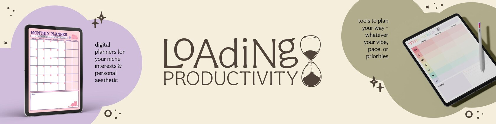 Whimsical digital planning tools designed for the chaotic-but-trying, made to bring humor, flexibility, and a little magic to everyday productivity.