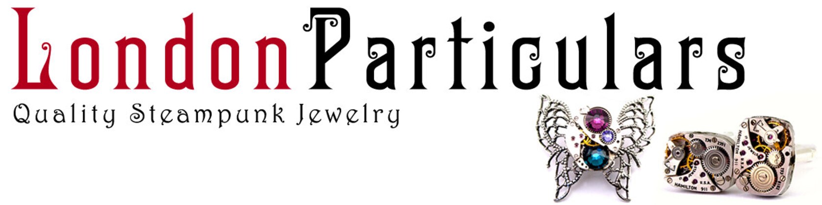 Welcome to London Particulars, purveyors of the FINEST LINE in Steampunk Jewelry. You’ve now discovered the perfect place to shop for HIGH QUALITY Steampunk Necklaces, Rings, Cufflinks, and distinct & unique clockwork jewelry at affordable prices.