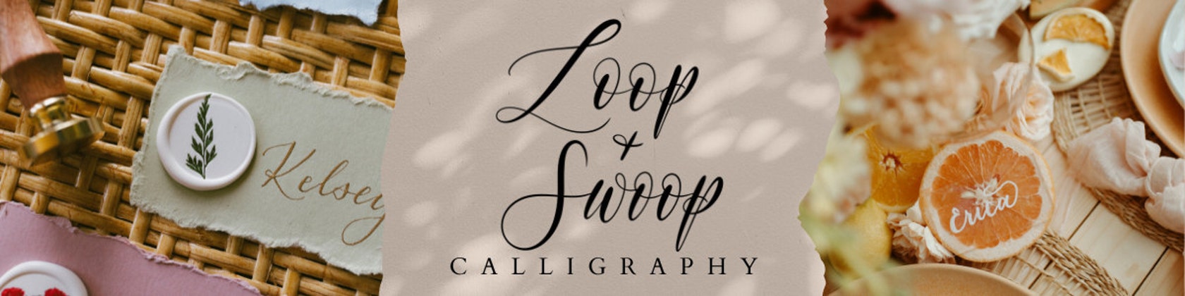 Welcome to Loop & Swoop Calligraphy Studio! What started as hand lettering and faux calligraphy, turned into a love affair with pointed pen and then inky chaos ensued! I am a mom, dog-mom and wife in San Diego and appreciate you supporting my shop!