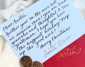 5 out of 5 starsThese Santa letters were the perfect magical touch for my kids! They were so excited to read Santa’s letter with the shimmery gold ink, the “fancy” letters, and the personal message. Caitlin did a beautiful job accompanied with the best customer service. The quality of her product was outstanding and I look forward to ordering from her again next year.