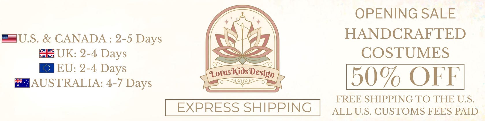 At LotusKidsDesign, every costume is handmade and sewn to order. Each piece is created specifically for your purchase, with careful attention to detail from start to finish. If you share your child’s height and weight (and any additional measurements you may have), we can tailor the fit to be as accurate and comfortable as possible—made uniquely for your order.