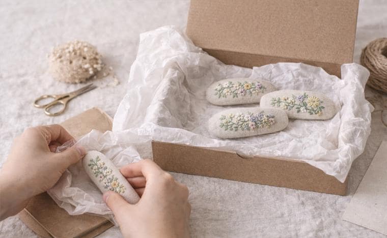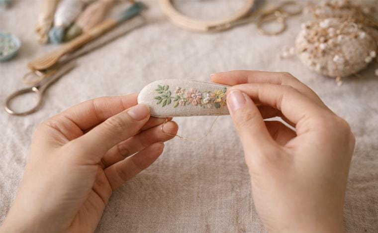 Our embroidery is inspired by nature, flowers, and everyday moments, expressed through soft colors and delicate details. Each item is made to order, allowing us to focus on quality, patience, and craftsmanship rather than mass production.