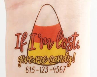 12 Custom Halloween Temporary Tattoos - Emergency contact number
