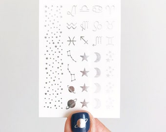Celestial & Zodiac Nail and Bracelet Tattoos