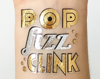 POP FIZZ CLINK! Metallic Gold and silver Temporary Tattoos