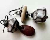 The seeds of LoveRoot jewelry started back when I used to braid friendship bracelets in grade school. It progressed to seed bead weaving on a loom, polymer clay beads, and then to macrame hemp chokers in high school. Today I channel my inner artist using a torch, hammer, wire, stones, crusty metal, fossils, ceramic baubles, shells, lampwork glass, polymer clay, scraps of fabric, and any other found objects that speak to me.
