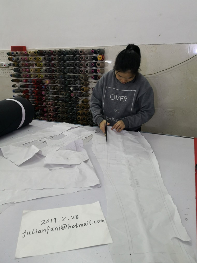 Hejin Huang, who is a fashion pattern-maker and clipping division. Her main job is to draw paper and electronic drafts of design samples. It requires skill and patience. Due to the different shrinkage of each fabric, she will repeatedly adjust and determine the cutting size of the fabric in order to make it more suitable for customers' requirements. Through her work, we can get pieces of cloth of the right size. She is hard-working and always brings us new ideas and design concepts.