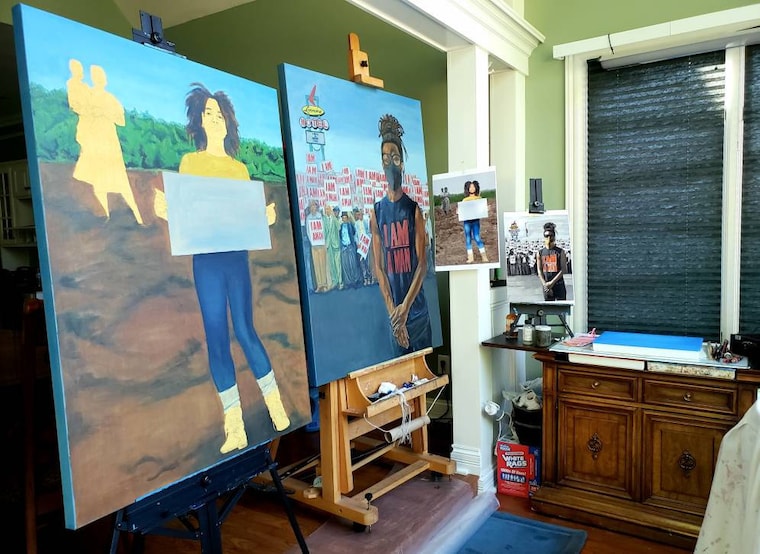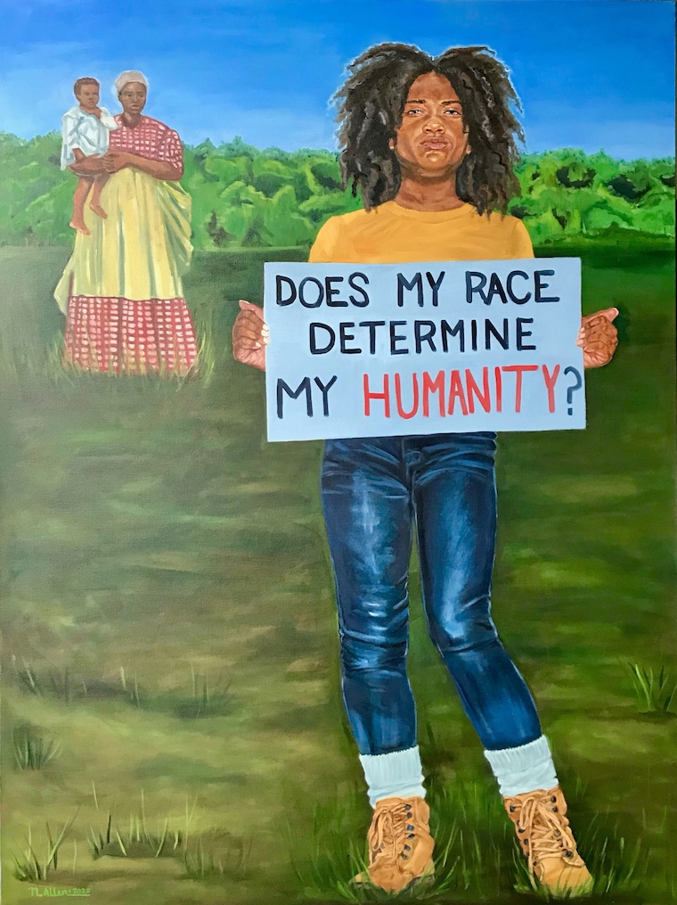 "My Life, My Humanity" is a 36X48 oil painting currently on exhibit at the Arts Center of the Bluegrass to April 2021 -