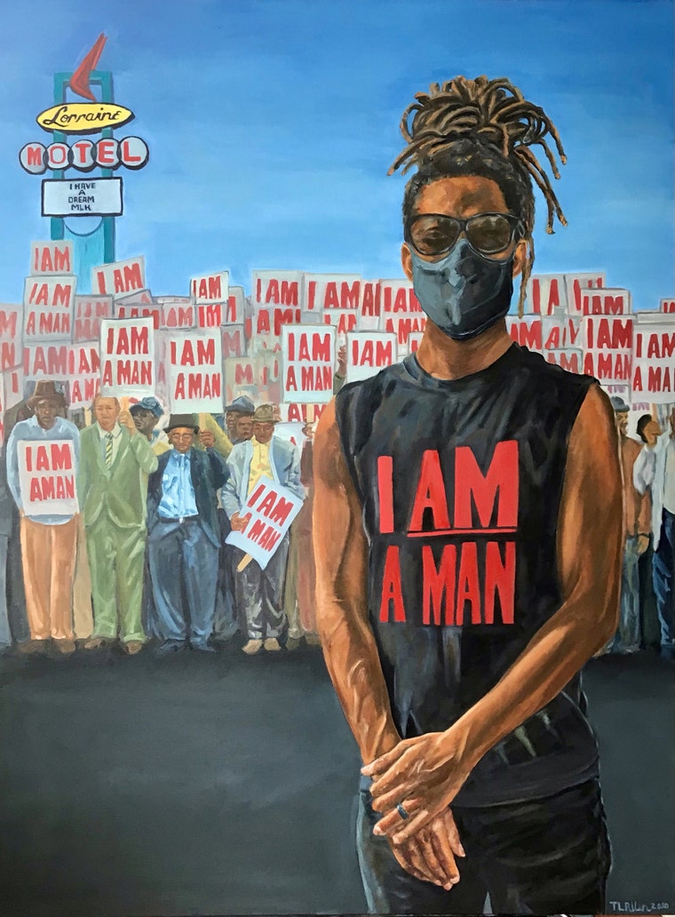 "I Am Still A Man," 36X48 oil painting currently virtually exhibited @ https://artcenterky.org/ & Roots101 Afr Ame Mus -