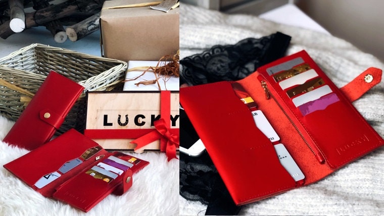 Woman Leather Wallet - Lucky Maxi Red -