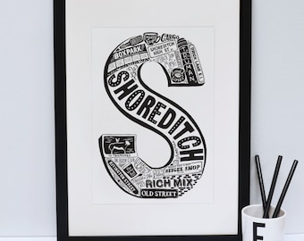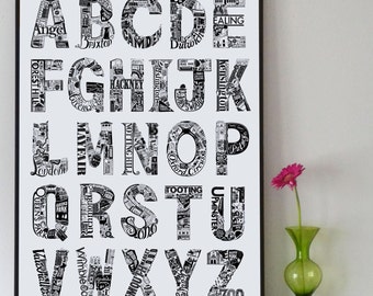 The brand is best known for its London alphabet. These artworks are made up intricate illustrations of landmarks, arranged to create the first letter of different areas of London. The range began with the Brixton “B” and was so popular that a whole alphabet followed. The areas were chosen based on demand, sometimes with multiple requests for each letter, and much of the content was crowd-sourced from the LucyLovesThis blog.