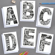 Lucy hand-draws designs inspired by things she loves; and she really loves type. As a designer in the publishing industry Lucy was able to let that obsession flourish and it pervades her work. Her products all use type in one way or another, be it to create a map or simply in the detail of one letter.