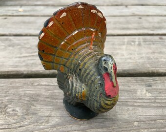 Vintage Gurley Multicolor Turkey Decorative Candle - imperfect 3 inch Gurley Thanksgiving Turkey - midcentury unused Gurley Holiday Candle